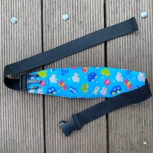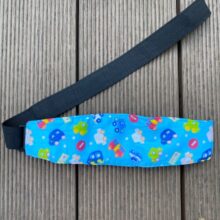 Need to put it on the car seat and when the child falls asleep just snap around their foreheads, otherwise it wakes them up. But definitely proves its purpose.