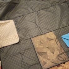 Great thing. Fits great into Polo sedan, and thick enough to keep the Stafford busy chewing the zippers.