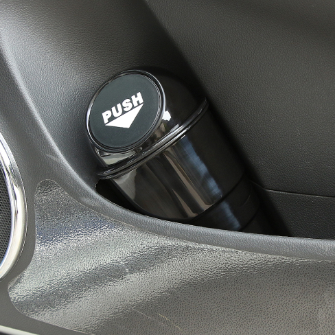 Fits well in the car door slot. Perfect for fast food receipts parking garage tickets and other small trash. Forces you to empty it out because once full you can no longer push the lid.